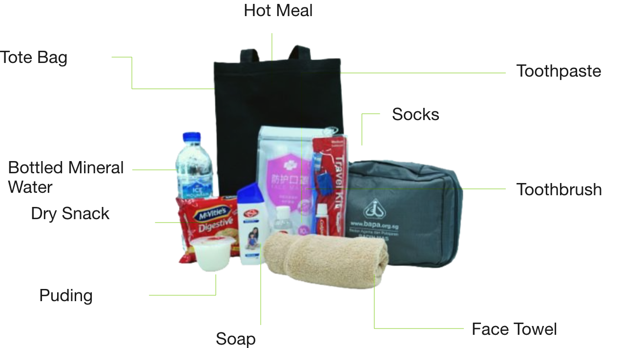 Pioneered by BAPA in 2021, Outreach for Rough Sleepers (OuRS) is a social initiative that aims to provide provisional support for the homeless in Singapore. Believe it or not, homelessness is still a prevalent issue amongst our community. Those we have interacted with are often without a home due to various reasons like the lack of family members, fear of being alone in their own home and to eliminate the cost of transportation to their jobs. OuRS conducts monthly distributions to locate these homeless communities in Singapore. Provisions such as insect repellent, toiletries, food and cothing are also distributed to these individuals to help them get by.